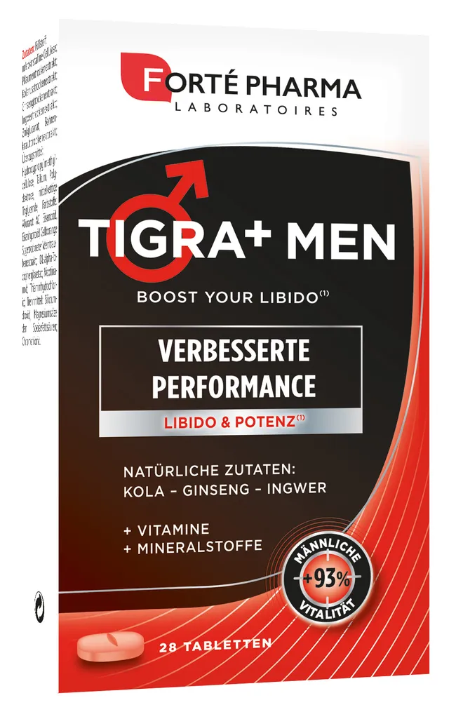 Forté Pharma Tigra+ Men ist ein hochwertiges Nahrungsergänzungsmittel, das speziell zur Unterstützung der männlichen Vitalität entwickelt wurde. Die Kombination aus ausgewählten Pflanzenextrakten, Vitaminen und Mineralstoffen zielt darauf ab, die Libido zu stimulieren, die körperliche Leistungsfähigkeit zu stärken und den Energiestoffwechsel zu unterstützen.